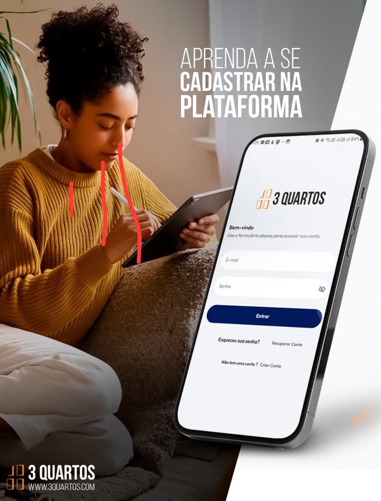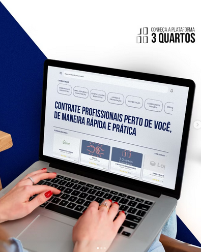 Cadastre-se agora na 3 Quartos! Solicite um serviço ou ofereça suas habilidades profissionais e veja como é prático ter uma plataforma que facilita sua vida a um clique de distância!